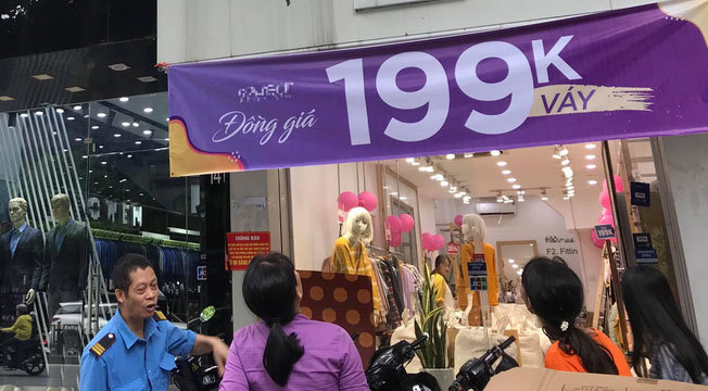 Cụ thể, rất nhiều cửa hàng treo biển hiệu giảm giá với các chiêu thức thu hút người đi đường vào mua sắm đó là những tấm biển có màu sắc nổi bật ghi số phần trăm được giảm như "xả hàng toàn bộ lên đến 70%", "mua 1 tặng 1", "xả hàng toàn bộ cửa hàng" hoặc "đồng giá sản phẩm chỉ từ 29k"….