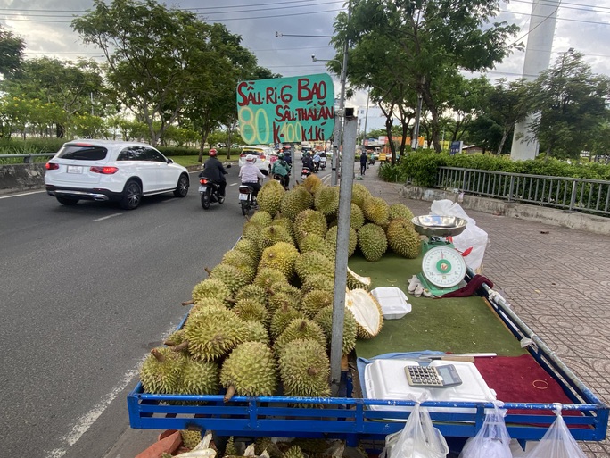 Tuy nhiên, có một số điểm bán ở TP HCM treo bảng sầu riêng hạt lép giá 50.000 đồng/kg thu hút rất nhiều người đi đường tấp vào hỏi mua.