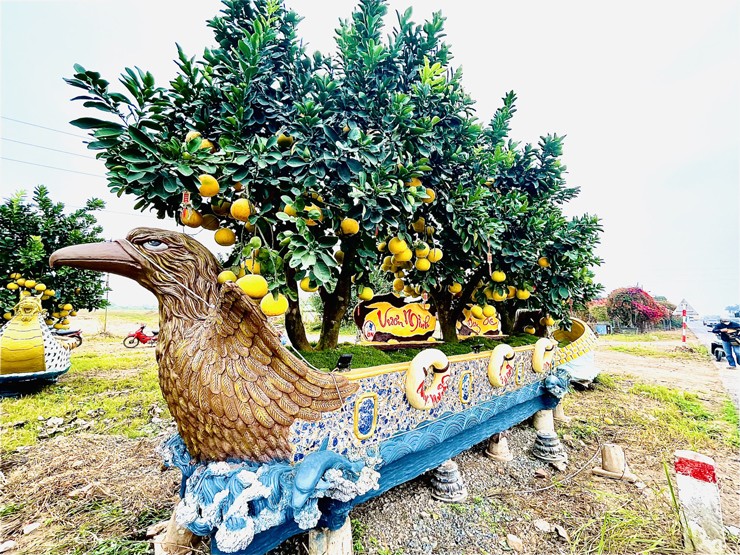 Chậu bưởi cảnh được kết hợp giữa con thuyền và con chim.