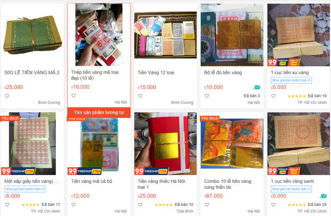 Hiện tại, giá của những mặt hàng vàng mã đang có giá dao động từ 8.000 – 25.000 đồng, những sản phẩm giày, dép, mũ áo, ipad, điện thoại và ô tô xe máy có giá 200.000 – 500.000 đồng tùy loại.