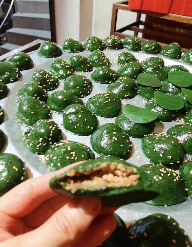 "Thoạt nhìn qua, bánh ngải có hình dáng khá giống với món bánh dày. Tuy nhiên thay vì màu trắng thì bánh ngải lại có màu xanh, bóng nhẫy, trông rất tươi mát. Đây vốn là món ăn đặc sản của người Tày, Nùng ở Lạng Sơn" - chị nói.