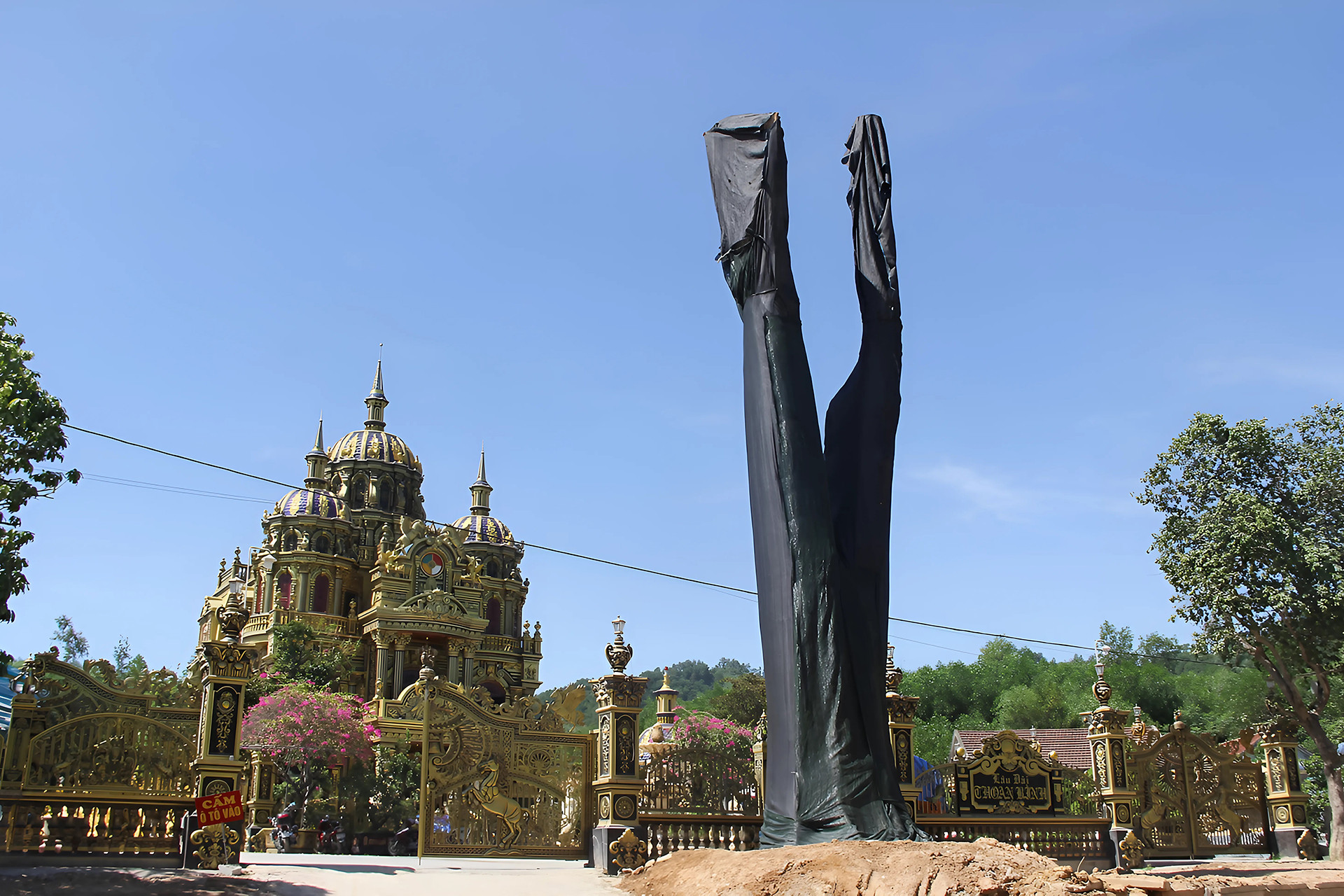 “Đại gia đồng nát” Nguyễn Vĩnh Thoan (SN 1978, xã Mỹ Thành, huyện Yên Thành, Nghệ An) mới đây lại khiến nhiều người bất ngờ về độ chịu chơi khi mua một cây săng lẻ kích thước "khủng” để trồng trước "lâu đài dát vàng".