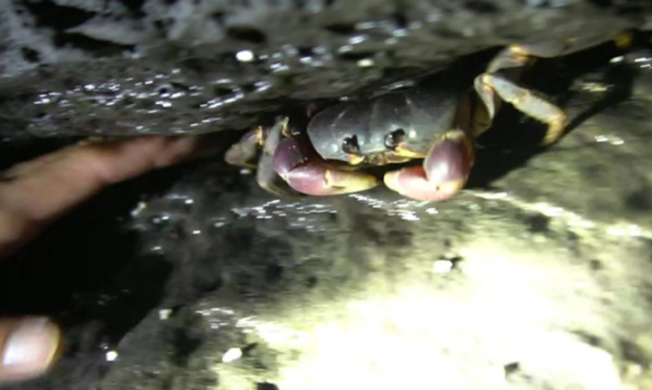 Khi phát hiện có ánh đèn, cua đá sẽ nhanh chân chui vào các hốc đá. (Ảnh minh hoạ).