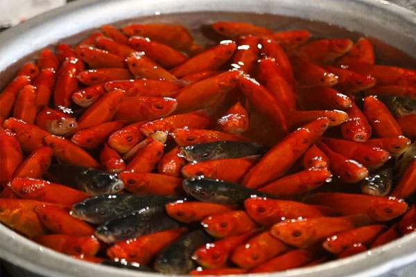 Theo ghi nhận của PV báo điện tử VTC News, ngay từ sáng sớm, nhiều người dân đã đi chợ để mua cá chép đỏ và bất ngờ khi thấy giá tăng mạnh so với những hôm trước. Cụ thể, giá cá chép loại to, đẹp là 100.000 đồng/3 con, còn với loại nhỏ như ngón tay thì có giá 50.000 đồng/3 con. Mới chỉ hôm qua, giá đắt nhất cũng chỉ là 60.000 đồng/3 con, còn năm ngoái thì giá phổ biến là 15.000 đồng/con.