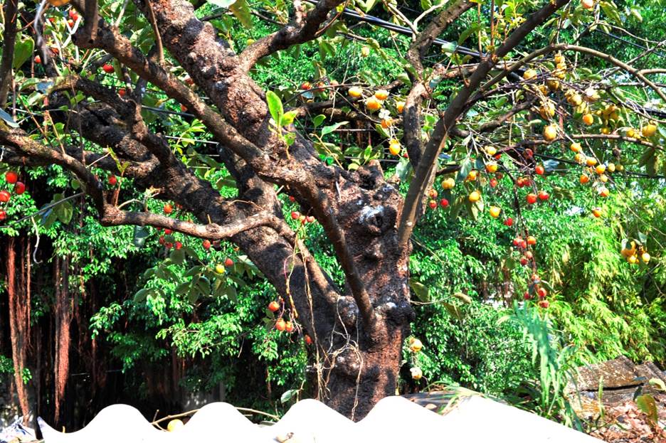 Chủ nhà ước tính cây hồng này gần 200 năm (phần tán cây trên mái nhà)