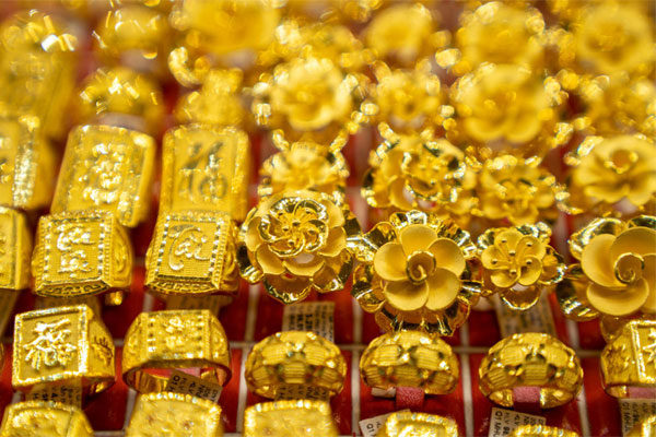 Giá vàng thế giới tăng mạnh, vàng nhẫn và vàng miếng SJC trong nước cũng lên theo. Ảnh: HH
