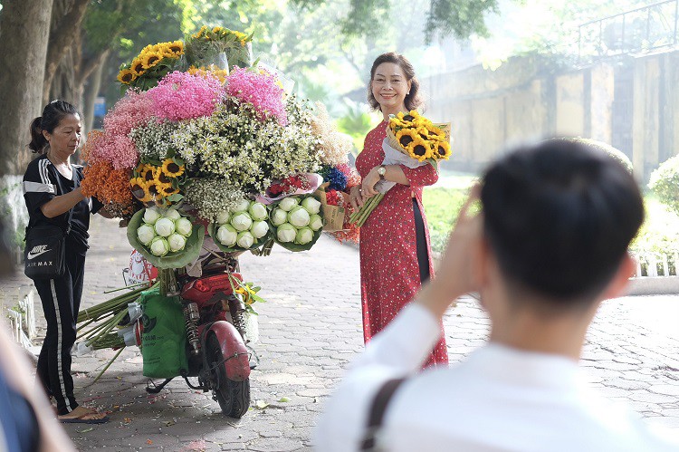 “100 nghìn đồng/bó hoa bé xíu, đắt gấp 2-3 lần hoa sen hay hoa hướng dương nhưng nhiều người vẫn thích. Tôi bán từ sáng đến giờ là 11 giờ trưa mà chỉ còn vài bó. Không chỉ đông người mua mà rất nhiều người còn đứng cạnh xe hàng của tôi chụp ảnh ké”, chị Thu nói.