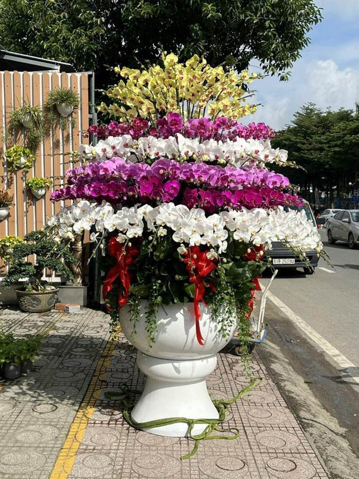 Ngoài ra, khách có nhu cầu đặt chậu với số lượng cây theo ý muốn có thể mua với giá từ 220.000 đồng/cây cho đến hơn 300.000 đồng/cây lan hồ điệp. Tiền mua chậu tính riêng, với nhiều mức giá từ vài trăm ngàn đồng cho đến vài triệu đồng thậm chí vài chục triệu đồng (nếu khách chọn chậu bằng nhựa thông thường sẽ được shop tặng không tính tiền).