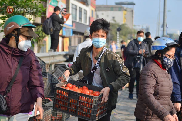 Hơn 8 giờ sáng, chị Ngô Thanh Thủy - đầu mối bán nông sản giải cứu ở Giải Phóng (Hà Nội) chia sẻ: “Điểm này còn 3 tấn cà chua nữa là hết hàng và chờ chuyến tiếp. Từ đêm qua tới giờ đã bán được 37 tấn gồm cà chua, bắp cải, su hào, súp lơ, cà rốt, hành và ổi”.