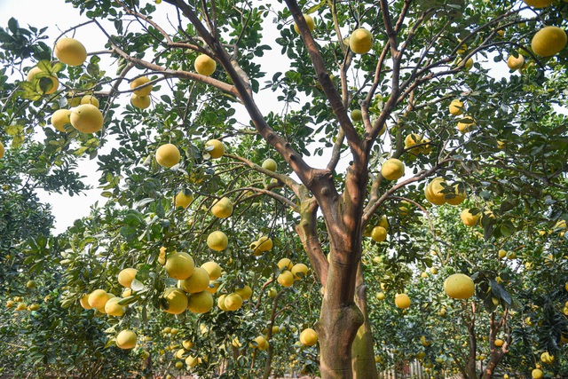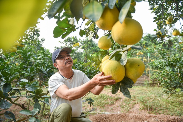 Ông Phùng Văn Đạt (Bắc Từ Liêm, Hà Nội) nhà có khoảng một mẫu bưởi chia thành nhiều mảnh, ngay vào thời điểm này nhiều thương lái tới để hỏi mua bưởi. Do năm nay thời tiết thuận lợi nên các gốc bưởi Diễn đều được mùa sai trĩu quả.