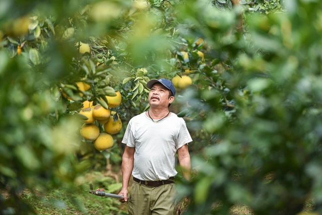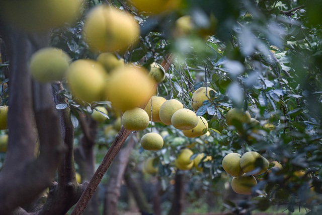 Mảnh vườn nhỏ nhà ông Đạt có hơn 200 gôc bưởi Diễn, nhiều cây có độ tuổi lên tới gần 30 năm.