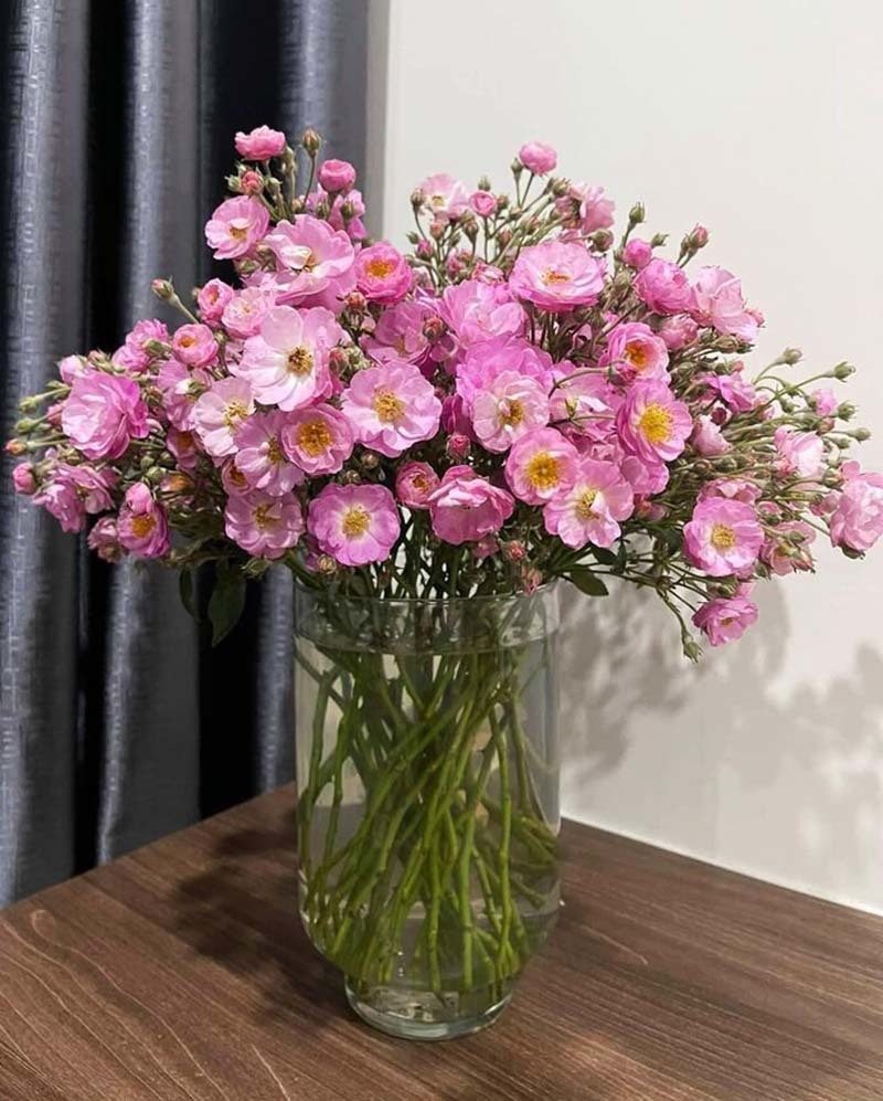 Theo chị Nhung, khác với các giống hoa hồng thông thường, hồng tầm xuân cực sai hoa, cành nào cũng chi chít nụ. Hoa cứ thế nở nối tiếp nhau, thoang thoảng mùi hương nhẹ dễ chịu nên cứ đến mùa chị lại mua về cắm.