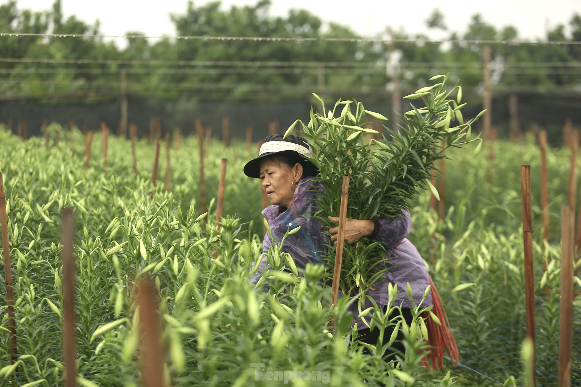 Những bó loa kèn sau khi cắt được chất lên xe để mang bán buôn, tại các chợ ở các khu vực nội thành và lân cận. Hoa loa kèn từ đó đến các tiệm hoa bán lẻ và rong ruổi trên các xe hoa đi khắp các con phố của Thủ đô.