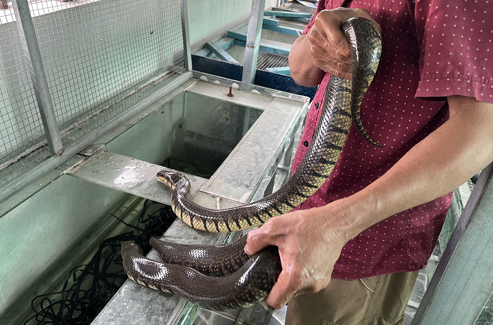 “Năm rồi tôi bán được 2.000 con rắn giống với giá trung bình khoảng 100.000 đồng/con”, anh Ngôn kể. Dự kiến năm nay, đàn rắn bố mẹ của anh đẻ khoảng 2.000 rắn con.