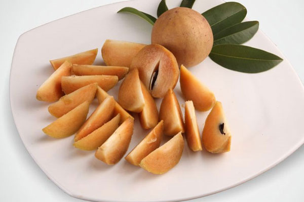 Quả hồng xiêm hình cầu hoặc hình quả trứng thon dài, đường kính từ 4-8cm và chứa từ 2-10 hạt. Khi chín, phần vỏ và thịt hồng xiêm đều có màu nâu, ăn rất thơm, mềm, mát và ngọt.