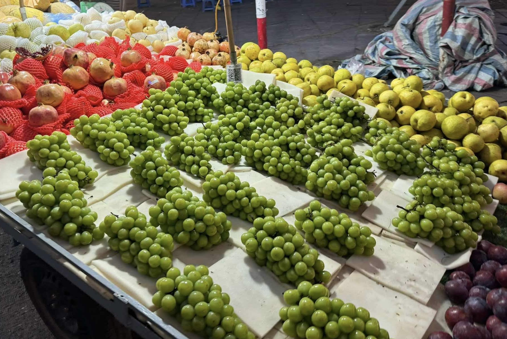 Nho sữa Trung Quốc được bày bán la liệt trên các sạp hàng rong ở Hà Nội. Ảnh: Duy Khánh