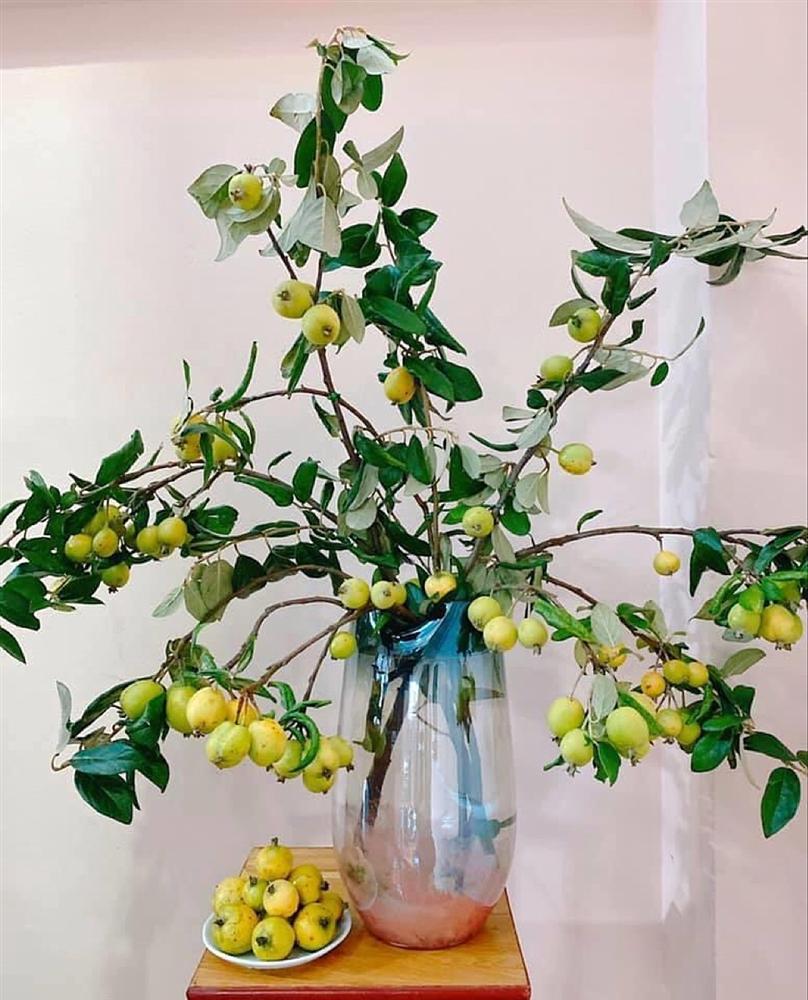 Chị Ánh chia sẻ, trang trí những cành hoa quả tươi trong phòng có cảm giác gần gũi với thiên nhiên, sinh động, lại thoang thoảng mùi hương của quả chín lúc giao mùa. Sau khi được một người bạn giới thiệu, chị đặt mua 10 cành chia thành 2 bình để trong nhà cho thơm.