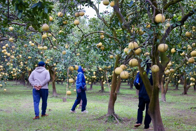 Vườn bưởi vào độ thu hoạch với những quả bưởi lắc lư trên cành cũng thu hút nhiều người đến check vườn check-in .