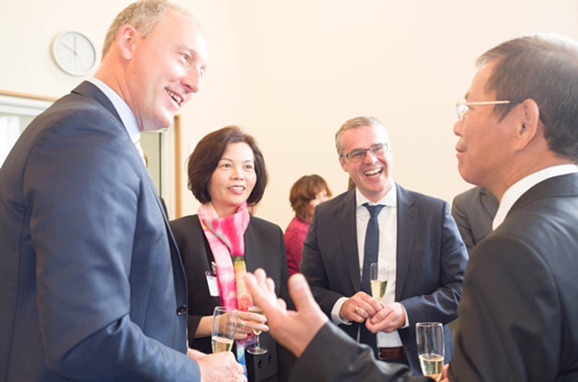 Lãnh đạo Vinamilk cùng ông Nguyễn Trường Thanh - Đại sứ đặc mệnh toàn quyền Việt Nam tại Vương quốc Đan Mạch đang trao đổi tại lễ ký kết.