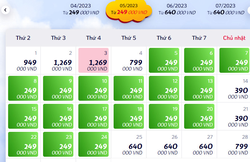 Hay từ Hà Nội đi Đà Nẵng, đi ngày 1/5 về 4/5 giá cũng rẻ tương tự nhưng khởi hành vào buổi chiều lúc 14h50’, về đêm muộn 23h05’.