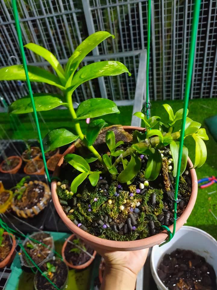 Một chậu lan đột biến đã ra rễ, ra hoa