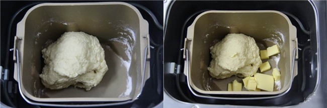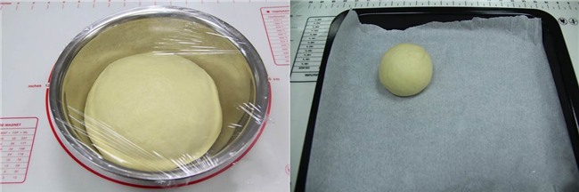 Sau khi bột được nhào thành khối bột mềm mịn thì cho bột vào âu ủ lên men cho bột nở gấp đôi. Khi bột nở gấp đôi bạn nhào qua bột và chia thành 2 khối bột. Để bột nghỉ 15 phút.