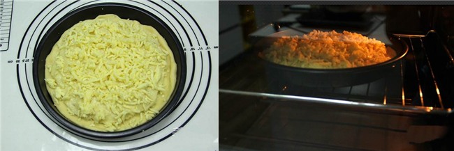 Cuối cùng thêm một lớp phô mai lên trên rồi cho khay bánh vào lò nướng. Nướng bánh ở 190 độ C trong khoảng 20 phút là bánh chín.