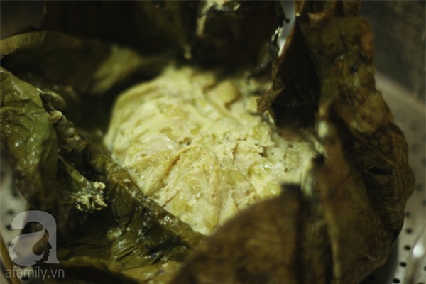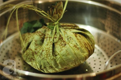 ![]() | ![]() Đặt nồi hấp lên bếp, đun sôi nước, đặt chả cốm vào hấp. Thời gian hấp chừng 15 phút là chả chín. Lấy ra dùng nóng. |