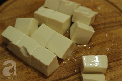 ![]() | ![]() Đậu phụ thái miếng vuông. |
