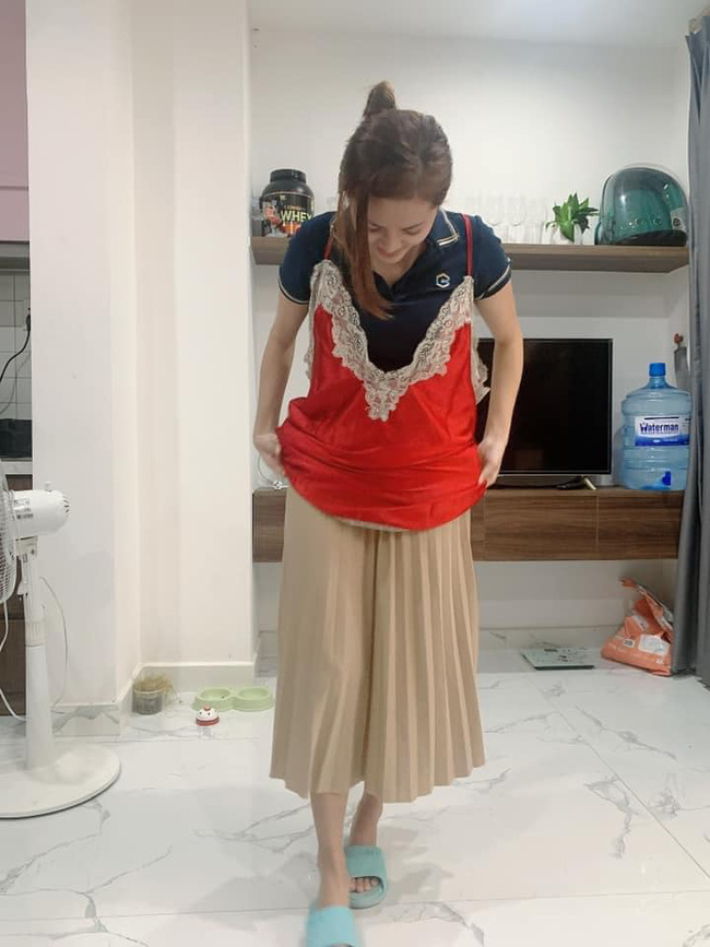 Cô gái ấy tên là Trâm Trâm. Giao dịch mua chiếc váy ngủ này đã diễn ra cả nửa năm trước nhưng phải cho đến tân bây giờ, Trâm mới có cơ hội để khoe với mọi người. Có thể thấy, chiếc váy gần như to hơn cả gấp đôi người của Trâm nên khi diện vào, Trâm như đang mặc một chiếc tạp dề vậy, thậm chí còn là tạp dề quá cỡ chứ chẳng được vừa hẳn với người nữa cơ.