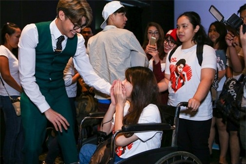 Ai cũng phải ghen tị với fan nữ này khi có cơ hội được tiếp xúc cực gần với nam ca sĩ người Thái Bình