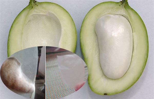 Gần đây, một số người dùng mạng xã hội đăng tải hình ảnh về những trái xoài "lạ" - hình dạng, màu sắc, mùi vị giống hệt xoài thường nhưng trong hột xoài có những lớp màng dày như lớp cao su hay túi nilon khiến nhiều người tiêu dùng cảm thấy bất an.