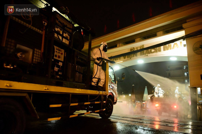 Binh chủng Hóa học phun khử khuẩn toàn bộ không gian BV Bạch Mai tối 28/3.