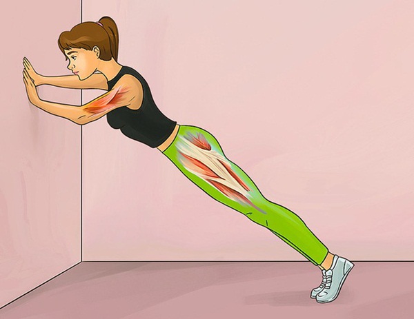 - Vào tư thế chống đẩy vào tường, giữ hai tay thẳng hàng với vai của bạn.