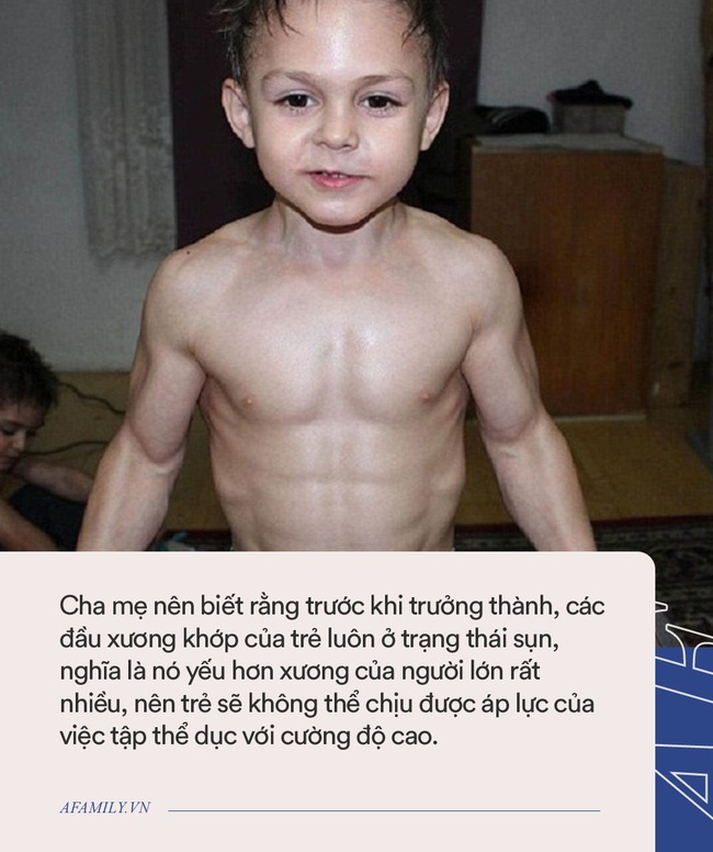 Các nhà dinh dưỡng cho rằng yêu cầu trẻ tập thể dục cường độ cao để tăng cơ bắp sẽ cướp đi chất dinh dưỡng cho sự phát triển của xương. Cha mẹ nên biết rằng trước khi trưởng thành, các đầu xương khớp của trẻ luôn ở trạng thái sụn, nghĩa là nó yếu hơn xương của người lớn rất nhiều, nên trẻ sẽ không thể chịu được áp lực của việc tập thể dục với cường độ cao.
