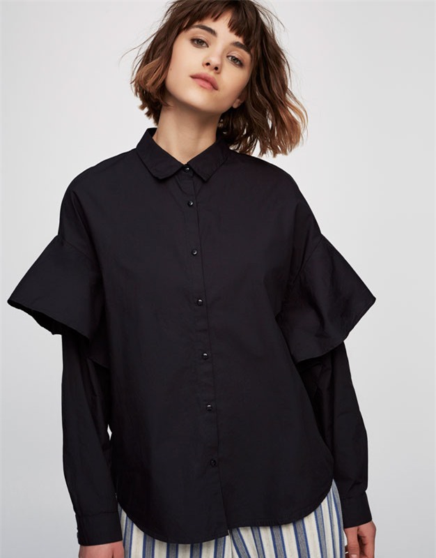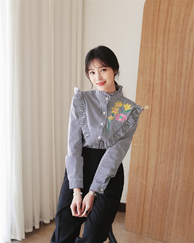 Những lớp bèo trên áo được cách điệu và sáng tạo, sự mềm mại bay bổng của bèo nhún trên dáng sơmi đứng có phần cứng nhắc khô khăn, sẽ khiến tổng thể cực kì thời trang và ấn tượng, vừa có thể diện đi chơi hay đi làm đều phù hợp.