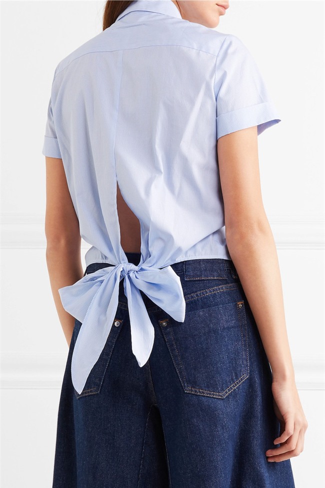 Chi tiết thắt dây sau lưng luôn khiến người mặc cực kì nữ tính và duyên dáng, vừa gợi cảm mà vẫn không kém phần thanh lịch. Chiếc áo sơmi kiểu dáng này là một món đồ giúp bạn làm mới bản thân mà vẫn kín đáo, thời trang.