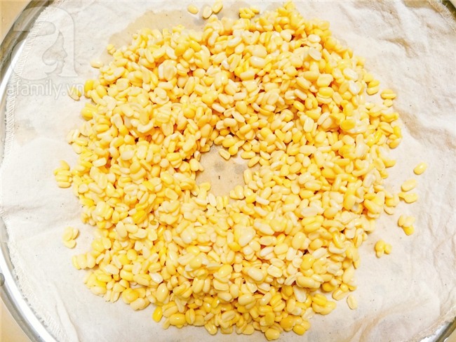 Cho đậu xanh vào xửng, bật bếp hấp cho tới khi hạt đậu chín mềm là được, với món xôi vò bạn nên hấp đậu cho chín chứ không nấu chín đậu nhé.