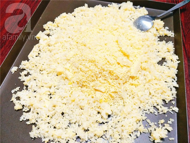 Xôi đã chín thì đổ ra khay hoặc mâm sau đó bạn cho nốt chỗ đậu xanh còn lại vào, dùng tay xoa đều 1 lần nữa cho các hạt xôi tơi ra và bám 1 lớp đậu xanh bên ngoài là được.
