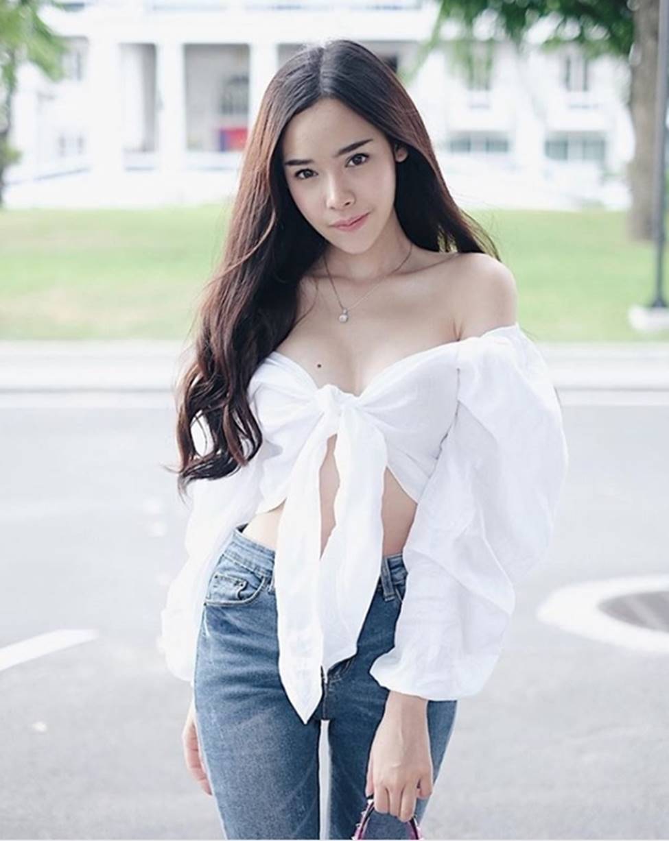 Dù mặc sơ mi trắng rõ rộng nhưng đường cong của Chadaphon Chaitep vẫn hiển hiện qua bức ảnh này.