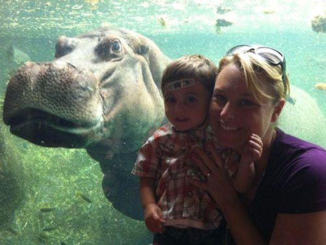 Chào nhóc con, chụp cùng nhau tấm ảnh nhé.