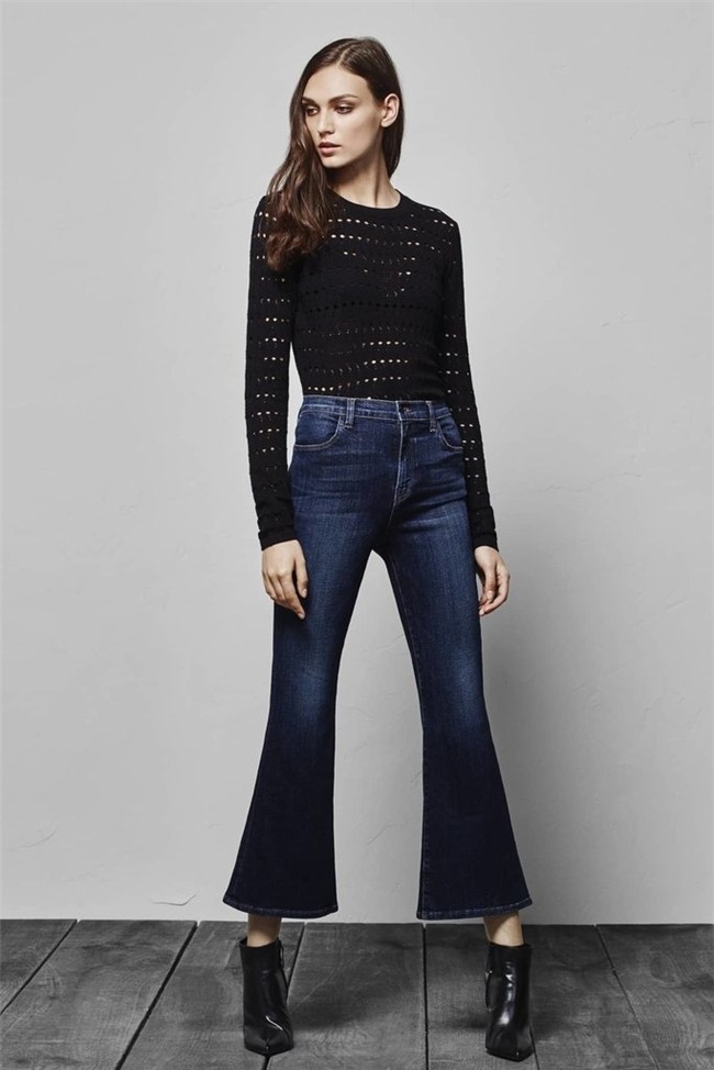Quần jeans ống loe lửng vẫn chưa thôi hết hot. Dáng quần này "kéo dài" đôi chân và làm vóc dáng chị em thêm mềm mại hơn. Bạn có thể mặc cùng áo sơ mi, áo thun, blazer hay áo khoác dáng dài.