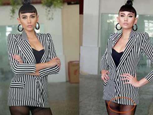 Đầu tiên, phải kể đến chuyên gia trang điểm Bi Tô bất chấp quy tắc thời trang, tự tin diện đầm xuyên thấu tạo dáng trước ống kính.