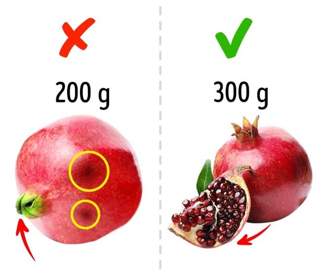 Ngoài ra, quả lựu chín sẽ hơi nặng cân hơn quả chưa chín. Do đó, với hai quả cùng kích thước, bạn nên chọn quả nặng hơn. Cuối cùng, đài quả lựu cũng là một chi tiết cần lưu ý, đài xanh nghĩa là quả chưa chín.