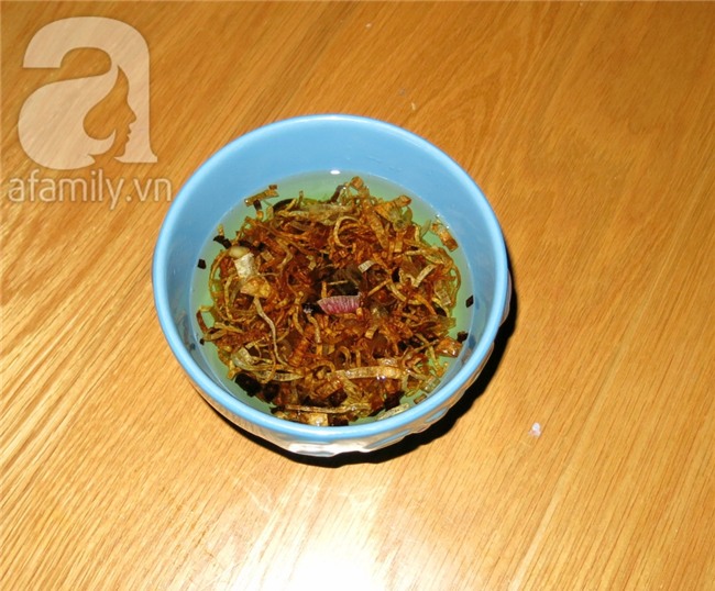 Cho 1 nồi nhỏ có dầu bắc lên bếp cho nóng dầu ở mức lửa vừa không nóng rực, xắt hành tây nhỏ và bỏ vào nồi dầu đang sôi, đảo đều cho hành tây chín. Đến khi chín vớt ra để ráo dầu, đồng thời chờ dầu nguội thì cho hành vào lại 1 tô nhỏ và chế dầu đã nguội để đó sẵn.