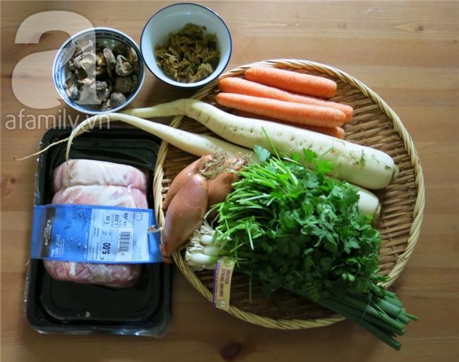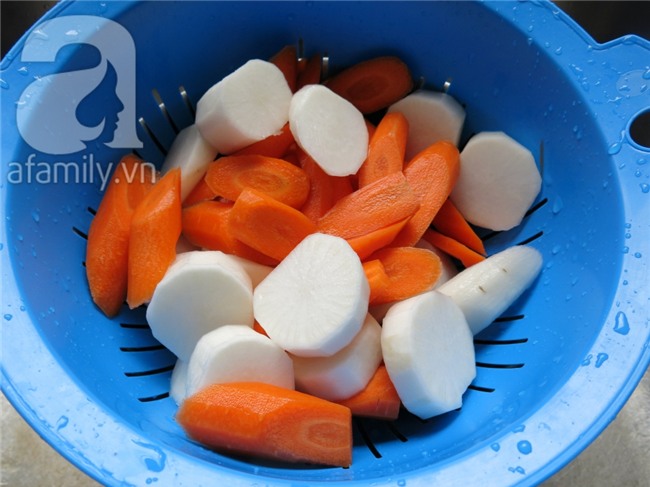 Hầm được một tiếng bỏ cải thảo khô trong hũ khoảng 1 hoặc 2 muỗng canh vào nồi. Củ cải trắng, cà rốt xắt khúc bỏ vào.