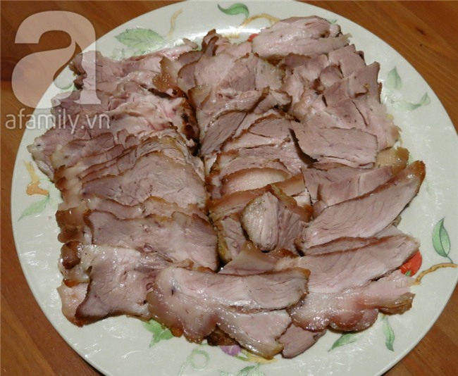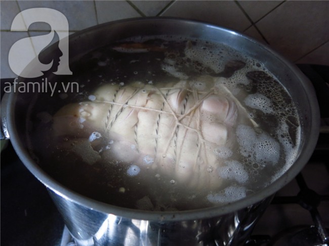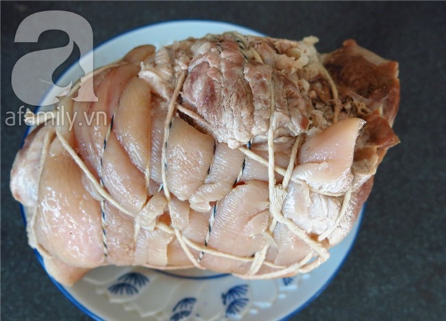 Thịt thịt heo rửa sạch và cột chặt lại và cho vào nồi nước dùng để luộc cho chín. Nếu cột dây thả vào hầm thì sẽ ngọt thịt hơn là bỏ cục thịt vào nồi, có khi nó bở.