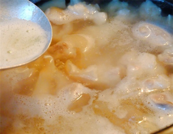 Thao tác vớt bọt bỏ đi vừa giúp nước trong, ngọt và không bị hôi. (Ảnh: Internet)