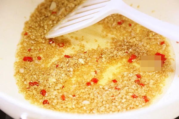 7. Đổ tỏi ót đã phi trước đó lên bún như trong hình.
