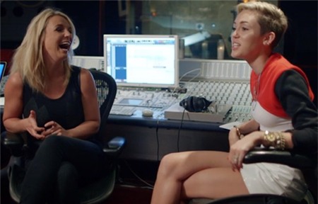 Về việc thu âm chung ca khúc SMS (Bangerz), Miley ca ngợi Britney: "Đó là những khoảnh khắc mà con người ta không thể nào quên được, nếu như cô nàng là một đứa trẻ thì sẽ "tè cả trong quần" khi được làm việc chung với Britney mất".